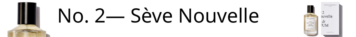 Thomas Kosmala-ს პიკანტური, ტკბილი, მსუბუქი და უნიკალური არომატი — Sève Nouvelle მწარე და ხისებრი ნოტების თანამედროვე ნაზავს წარმოადგენს. ტონკას მარცვლები და ქარვის ხე სურნელის ბაზას სიმშრალეს მატებს, ჟოლო კი — ტკბილი, ხილისებრი ნოტით ამდიდრებს.